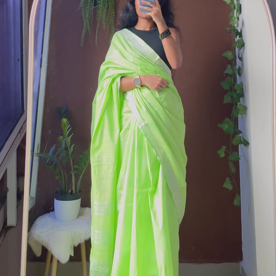 The subtle sheen and flowing texture give this saree a modern yet traditional look, perfect for women who appreciate minimal style with classic appeal. Its soothing pastel green tone complements all skin tones and pairs effortlessly with both contrast and matching blouses.