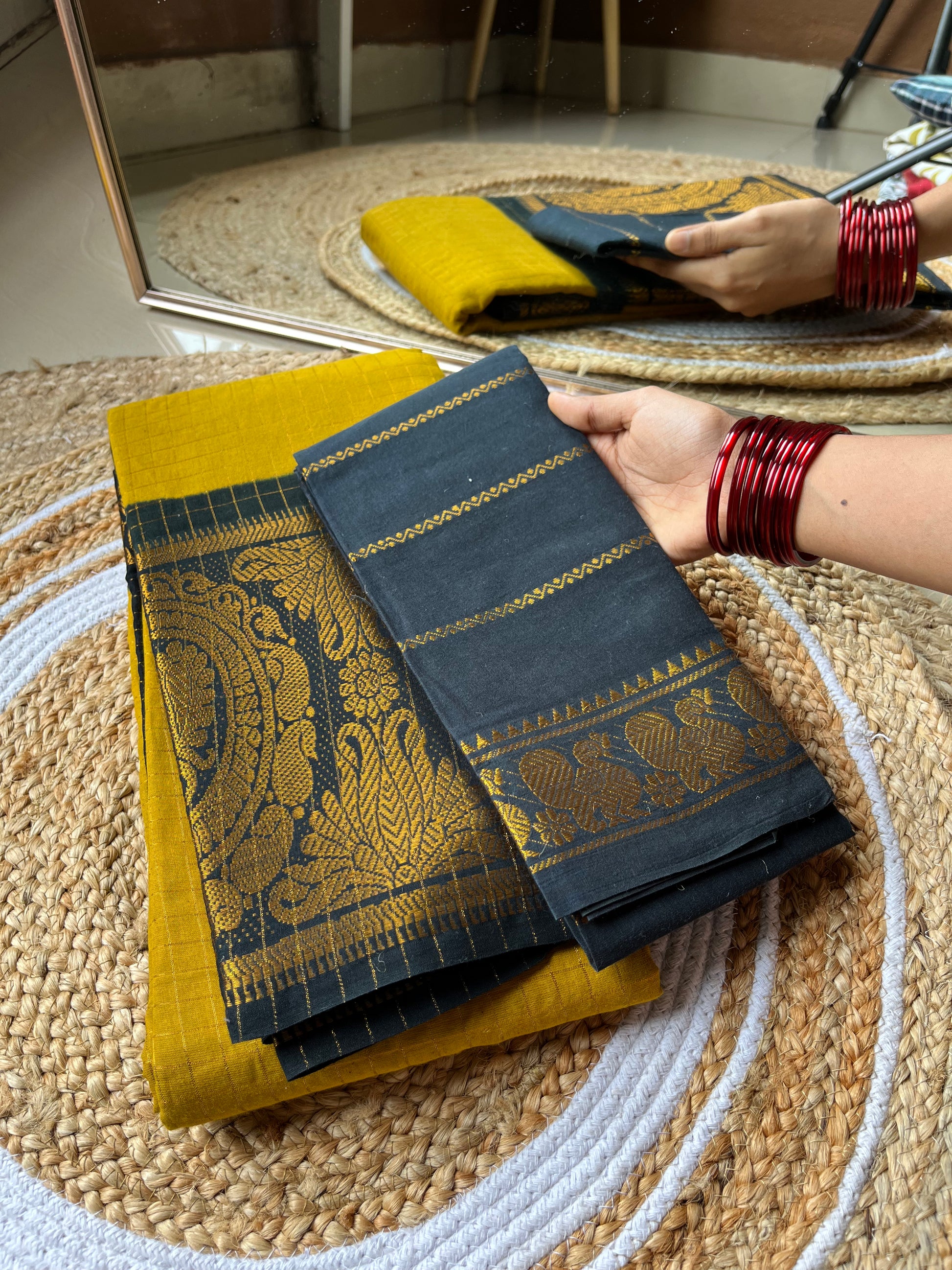 Authentic Madurai Sungudi Saree made from pure cotton with traditional hand-tied Sungudi “pulli” work. Lightweight, breathable, and perfect for everyday elegance or festive charm. Includes matching unstitched blouse piece.