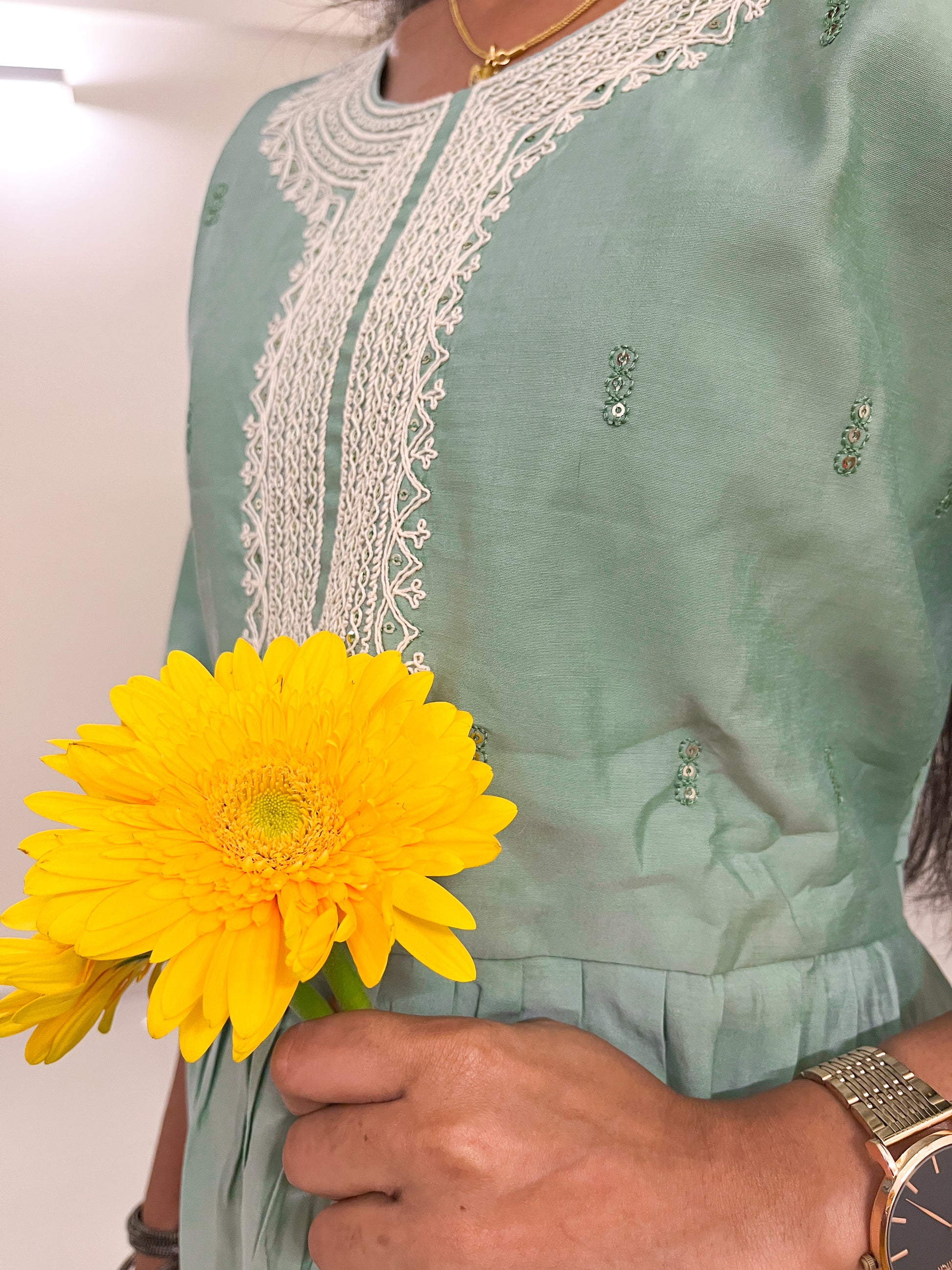Pastel Mint Green Cotton Mix Kurta Set with Embroidery & Tie-Dye Dupatta –TRSR 003 D