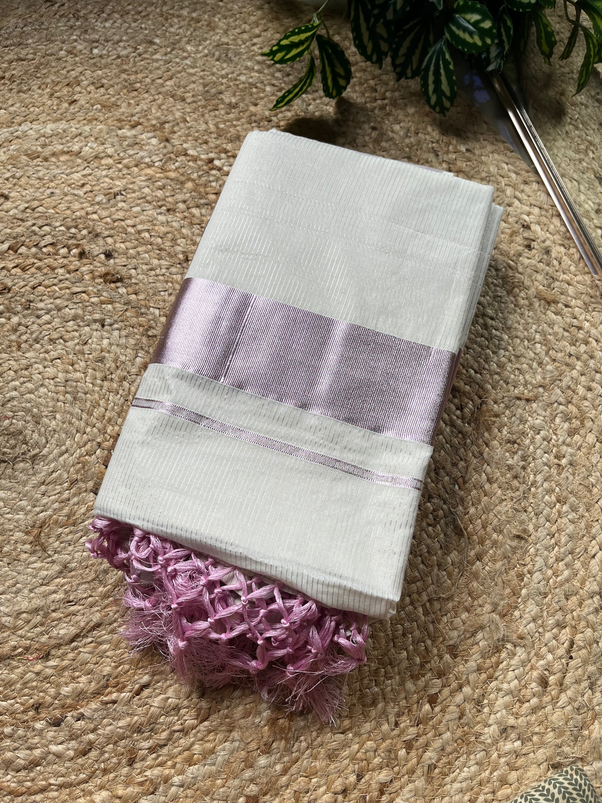 Rose Gold Kuthampully Cotton Saree with Tassels – Handwoven Kerala Handloom Saree TR 034